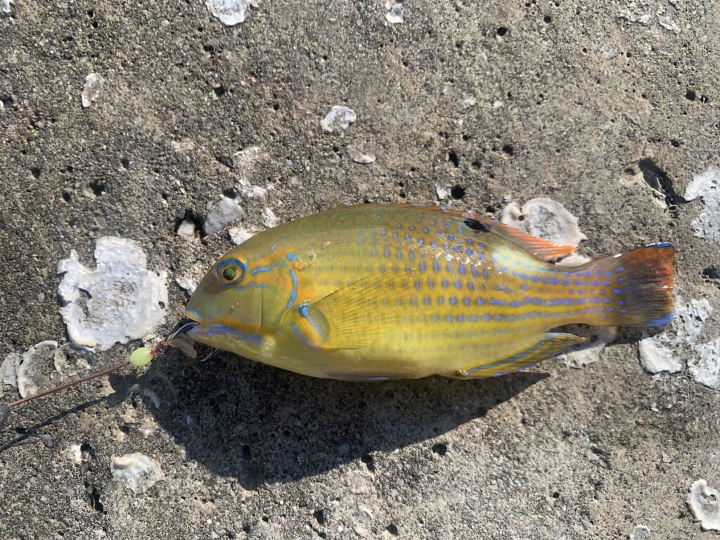 沖縄では、マクブ(シロクラベラ)は資源保護の観点から 35cm以下はリリース がルールになっています。